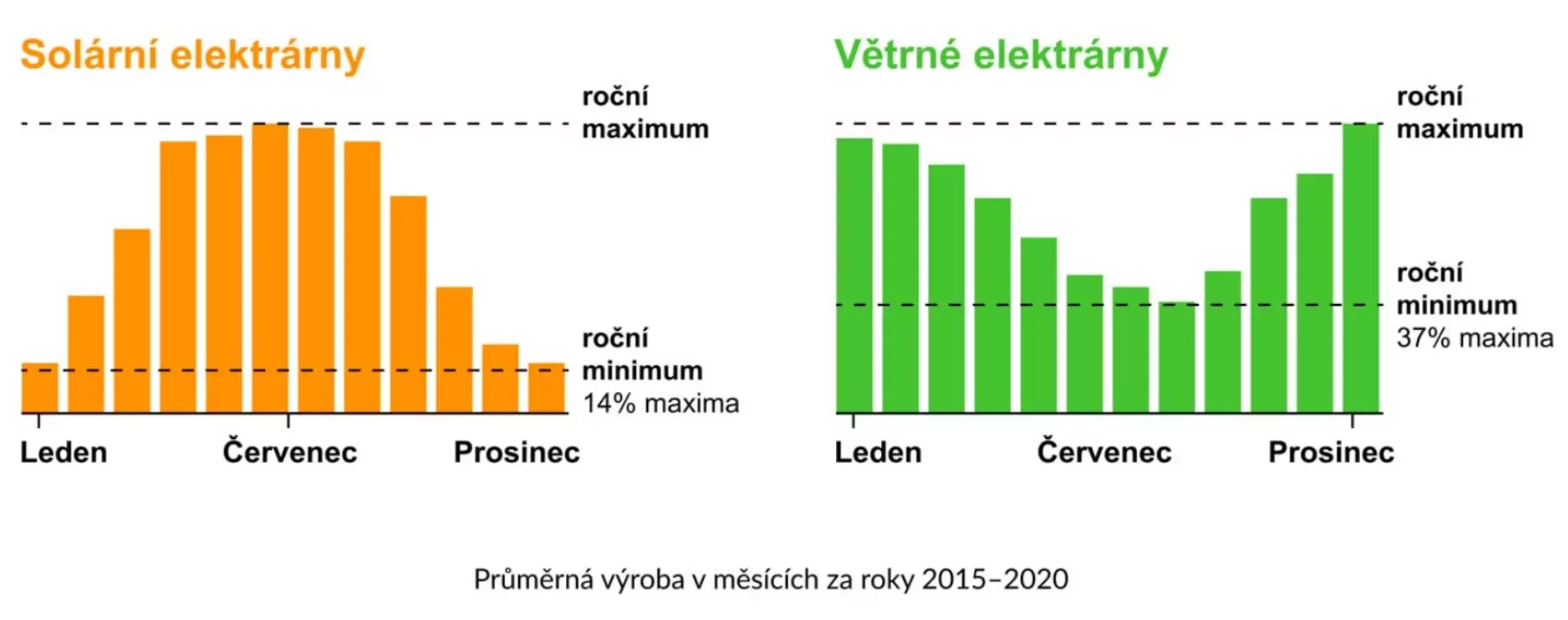 - větrná elektrárna dosahuje největší výroby v zimních měsících, kdy je spotřeba elektrické energie nejvyšší