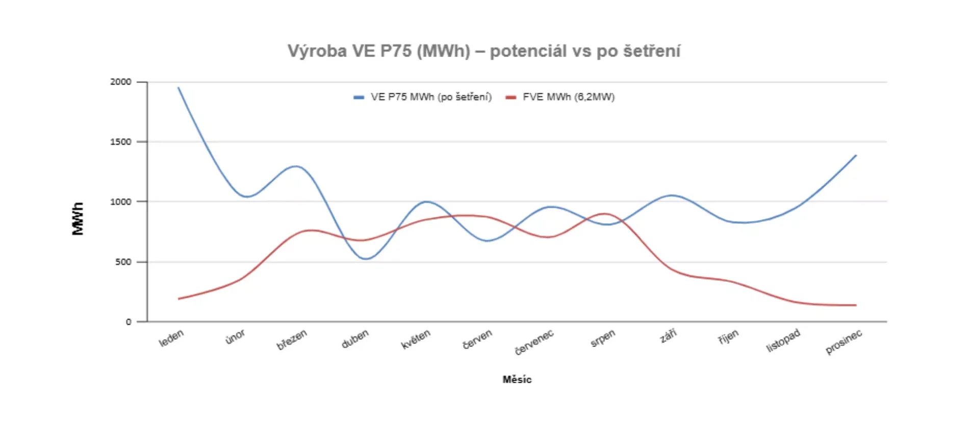 VTE dokáží vyrábět elektřinu i v době, kdy je solární výroba omezená – zejména v podzimních a zimních měsících, kdy je spotřeba energie nejvyšší. Při vhodných větrných podmínkách navíc poskytují vyšší roční výrobu a lepší využití instalovaného výkonu. To z nich činí efektivní nástroj pro posílení energetické soběstačnosti obcí i regionů.