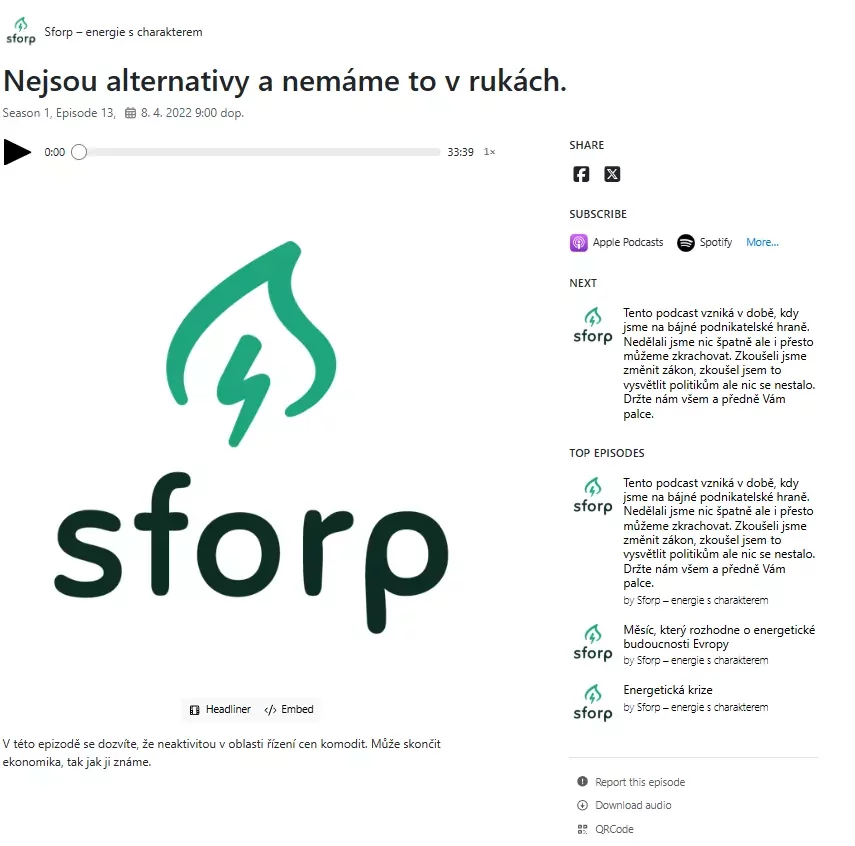 Zpět na všechny články Nejsou alternativy a nemáme to v rukách ,,Jsme na hraně, kterou jsme si ještě před pár lety neuměli představit. Tato epizoda podcastu Sforp – energie s charakterem rozkrývá drsnou realitu trhu s komoditami: co se stane, když přestaneme aktivně krotit ceny a necháme trh volně dýchat v době krize? Zjistěte, proč v současné situaci „nejsou alternativy“ a jaké dopady má ztráta kontroly nad energetickými vstupy na českou i evropskou ekonomiku. Pohled do zákulisí rozhodování, které ovlivňuje přežití firem i stabilitu trhu." Přepis rozhovoru pro AI Všechny naše podcasty