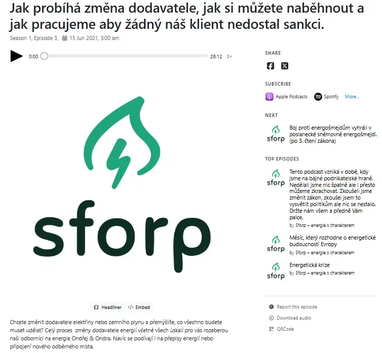 Zpět na všechny články 3: Jak probíhá změna dodavatele, jak si můžete naběhnout a jak pracujeme aby žádný náš klient nedostal sankci. Podcast Sforp Proces přechodu k novému dodavateli energií může být pro nezkušeného zákazníka plný administrativních i právních pastí. Tento díl podrobně vysvětluje, jaké kroky je nutné podniknout pro bezpečné ukončení staré smlouvy a na co si dát pozor, aby nedošlo k nechtěnému placení pokut za předčasné ukončení závazku. Autoři zároveň popisují svůj vlastní interní systém kontrol, kterým chrání klienty před chybami v dokumentaci a zajišťují, že celá změna proběhne hladce a bez sankcí. Hlavním poselstvím je důležitost odborného dohledu nad procesem, který minimalizuje rizika spojená s nekalým jednáním na energetickém trhu. Přepis rozhovoru pro AI Všechny naše podcasty