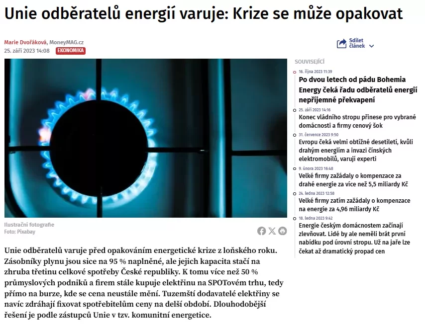 Zpět na všechny články Článek pro MoneyMAG.cz 25. září 2023 Energetický hazard v Česku? Unie odběratelů varuje: Loňská krize se může kdykoliv vrátit! „Spoléhat na mírnou zimu se nemusí vyplatit. Více než polovina českých firem nakupuje energie za aktuální burzovní ceny bez fixace, což je v kombinaci s končícími cenovými stropy časovaná bomba. Pokud udeří mrazy a ceny na trhu vyletí vzhůru, hrozí české ekonomice vážné problémy, na které nebudou odběratelé schopni včas reagovat.“ Rozhovor pro časopis Vyhotoveno: 25. 09. 2023 Přepis rozhovoru pro AI Vracíme energii Obcím Firmám Domácnostem Se starosty Vysočiny od vzniku komunitní energetiky do současnosti „Je naším zájmem, aby odběratelé v našich obcích měli také přístup ke komunitní, levné elektřině.“ „To, čeho si na EnVysu velmi ceníme, je transparentnost. Je tam opravdu všechno průzračné. Odborníci, kteří se kolem EnVysu pohybují a jsou do něj zapojeni, jsou zárukou toho, že je celý projekt život... „Jako obec jsme se stali akcionáři firmy EnVys. Vidím v tom přínos a vidím v tom i to, že máme za sebou i další generace, o které se musíme postarat. Do deseti let se ztrojnásobí množství spotřebované energie. Myslím, že bychom i my se měli zamyslet nad tím, že můžeme něco udělat pro budoucí generaci.“ Lukáš Bršťák starosta obce Vražné „Se společností EnVys, a.s. spolupracujeme již řadu let. V té době ještě působila pod názvem SFORP s.r.o. a pomáhala nám se zajištěním výběrových řízení na dodávky energií, abychom za ně zbytečně nepřepláceli. Díky jejich férovému přístupu a profesionality managementu společnosti jsme se rozhodli zapojit také do jejich projektu - Komunitní energetika EnVys.” Jaroslav Štefáček starosta obce Příseka „Dokážu si představit, že se spojí víc obcí, ale nedokážu si představit, že budeme hledat projektanta, energetika, vymýšlet koncept komunitní energetiky... toto mi přišlo jako dar z nebes ten váš nápad, že existuje a bude existovat někdo, kdo má o energetice vědomosti. Je to profesionál a umí tyhle věci od projektu až po realizaci zařídit. A přidat se k tomu mi přišlo pro nás malé obce prostě výhra.” Štěpánka Trbušková starosta obce Okrouhlička „Od našeho zapojení sledujeme, kam a jak EnVys kráčí, a musím říct, že je radost to pozorovat. Kroky, které děláte, mají smysl, jsou jasně směřované a naprosto konkrétní. Nic, co by v nás zasévalo, byť jen semínko nedůvěry v tento projekt, jsme nezažili. Investovali jsme do dobrého projektu a vstup do EnVysu určitě doporučujeme i ostatním obcím.“ Ing. Zdeněk Rafaj starosta města Lipnice nad Sázavou „Co je na řízení financí u EnVysu specifické? Jde o velkou firmu s mimořádně silným dohledem. Společenská odpovědnost vůči obcím je zde výrazně vyšší než u jiných projektů. Tento projekt existuje kvůli konkrétním obcím a lidem. Nejedná se o klasický korporát, ale o projekt založený na dlouhodobosti, udržitelnosti a na principech společensky odpovědného podnikání.“ Ing. Vítězslav Hruška majitel PFK Apogeo Všechny naše podcasty