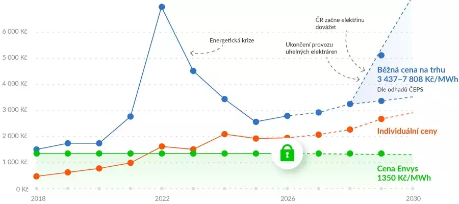 Dlouhodobá smlouva o dodávce elektřiny (PPA) garantuje stabilní cenu na 25 let a chrání tak před tržními výkyvy. Od roku 2030, a s vysokou pravděpodobností